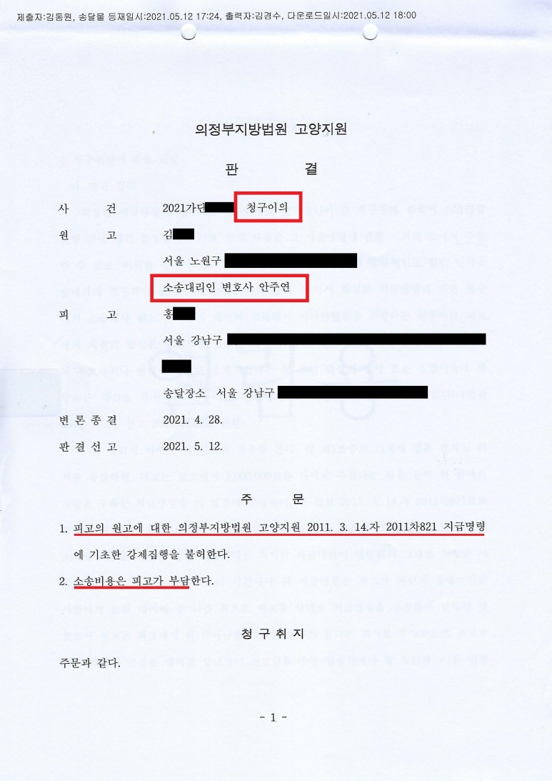 ¨ç 乫ÀÚ°¡ ÆÇ°á¿¡ µû¶ó È®Á¤µÈ û±¸¿¡ °üÇÏ¿© ÀÌÀÇÇÏ·Á¸é Á¦1½É ÆÇ°á ¹ý¿ø¿¡ û±¸¿¡ °üÇÑ ÀÌÀÇÀÇ ¼Ò¸¦ Á¦±âÇÏ¿©¾ß ÇÑ´Ù.