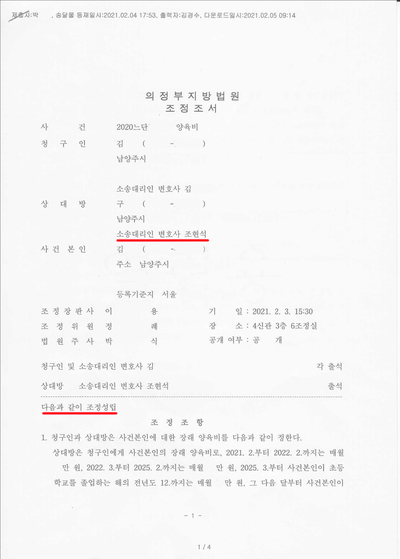 ÀÌ·¯ÇÑ ³²ÆíÀÇ Ã»±¸´Â ÇÕÀǼ¿¡ ±âÀçµÈ ³»¿ë¿¡ ¹ÝÇϱ⠶§¹®¿¡ ´ç¿¬È÷ ¿ì¸®°¡ ½Â¼ÒÇÒ °Å¶ó°í »ý°¢ÇϽðÚÁö¸¸, Çö½Ç¿¡¼´Â ¿ÀÈ÷·Á ³²ÆíÀÇ Ã»±¸°¡ ÀοëµÉ °¡´É¼ºÀÌ ÀÖ¾î¿ä.